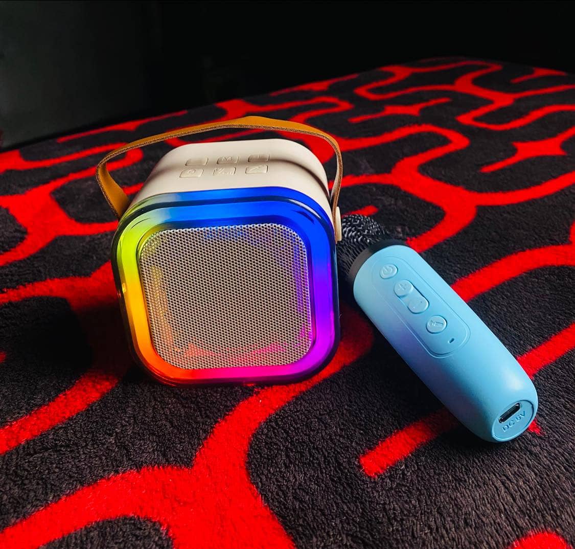 "ব্লুটুথ স্পিকার এবং একটি হ্যান্ড মাইক্রোফোন"