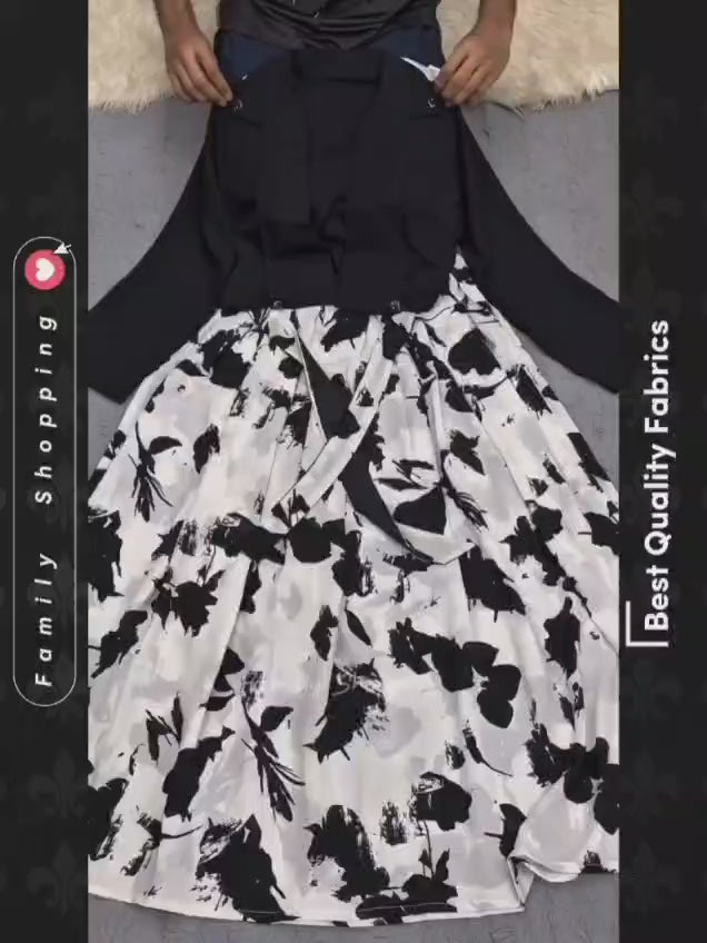 Dubai Cherry Fabrics, Gown With Koti (White and black)