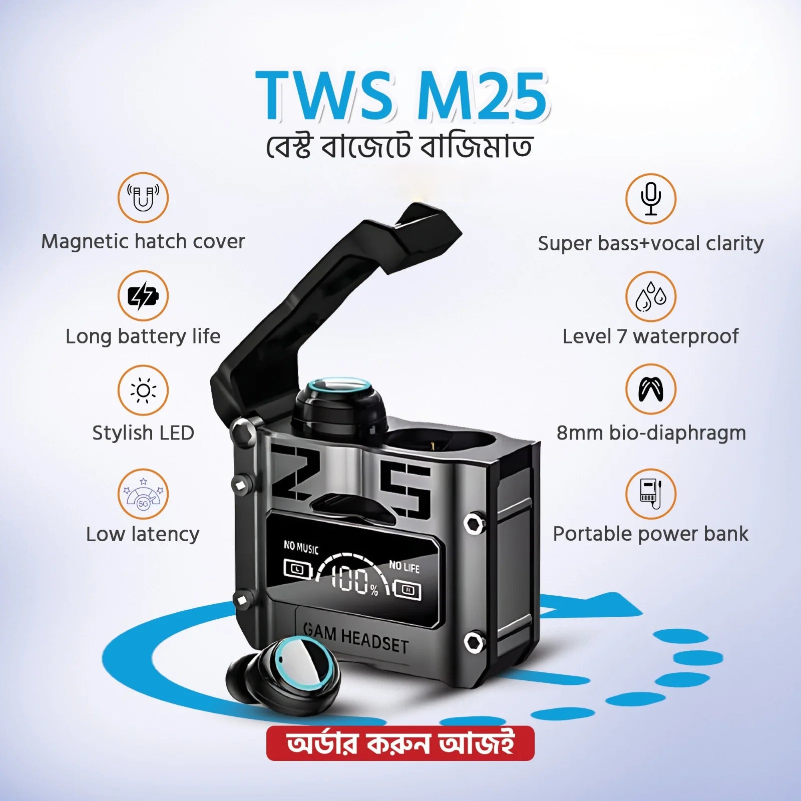 M25 tws Headphones Premium Quality Touch Control Noise Reduction (Original)